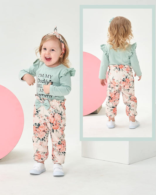 Newborn Infant Baby Girl Clothes Ruffle Romper Toddler Girl Floral Cotton Pant Sets Girls Clothing Outfit